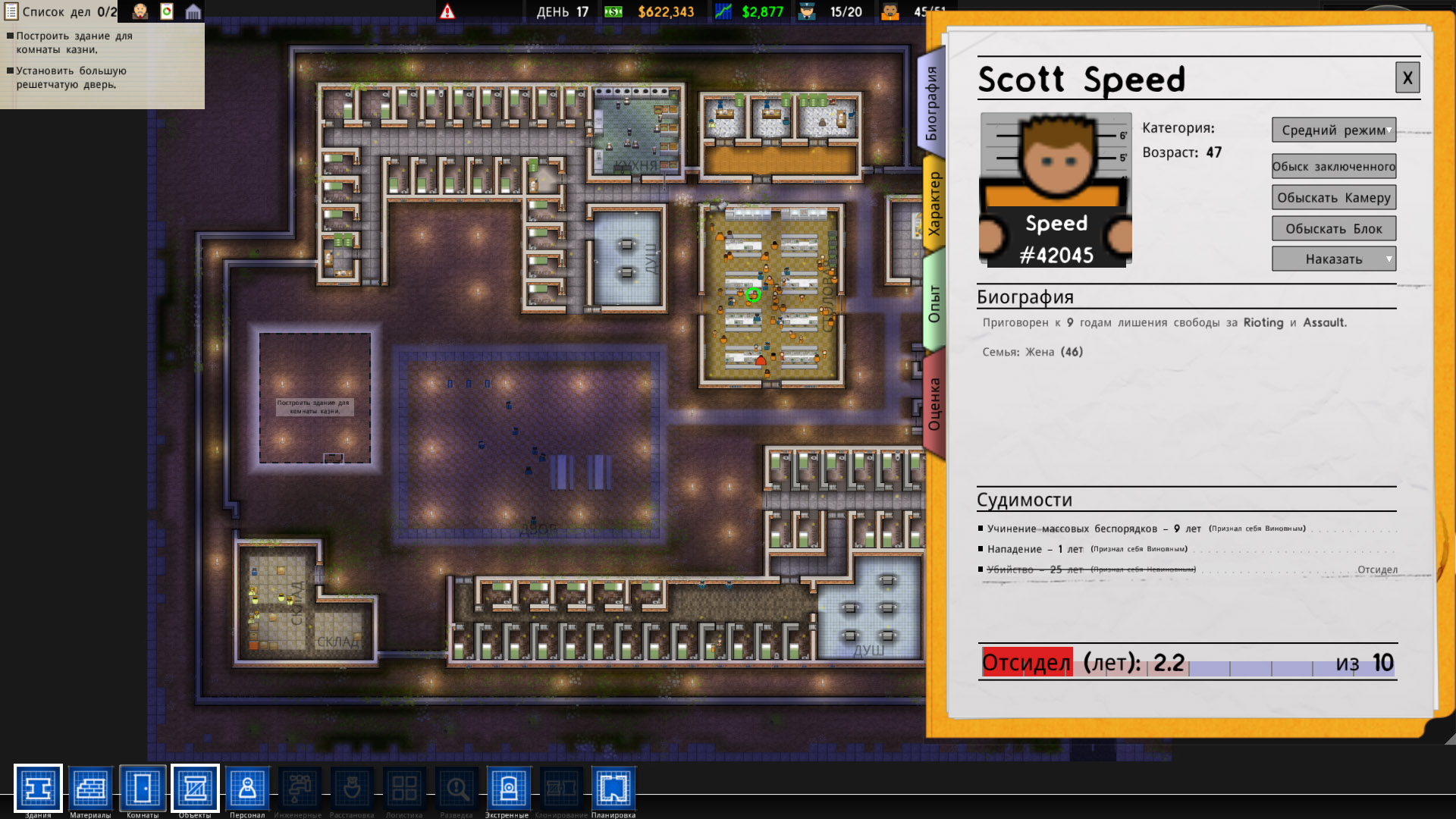 Prison Architect - симулятор тюремного магната, с полным контролем всех аспектов жизни заключенных! Вашей задачей будет постройка и развитие самой настоящей тюрьмы. Создатели игры вдохновлялись такими хитами прошлых лет как Dwarf Fortress и Dungeon Keeper. Причём надо будет организовывать не только камеры для заключённых, но и заниматься постройкой различных служб, обустройством помещений и многим другим. В игре присутствует сюжетная компания, представленная в виде кат-сцен, в которых рассказывается о жизни заключённых. Кроме компании есть и режим песочницы, где вы можете строить свою тюрьму с нуля.